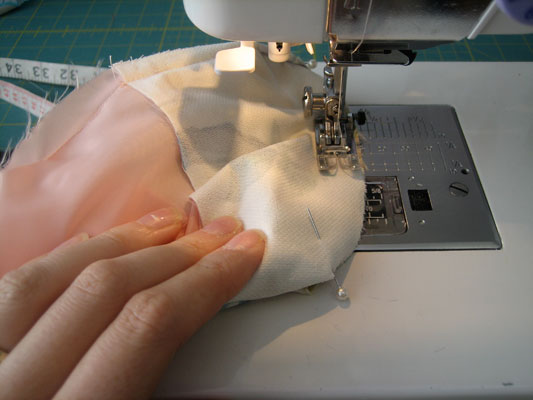 To keep the neckline from stretching, I place some stay-tape around it.